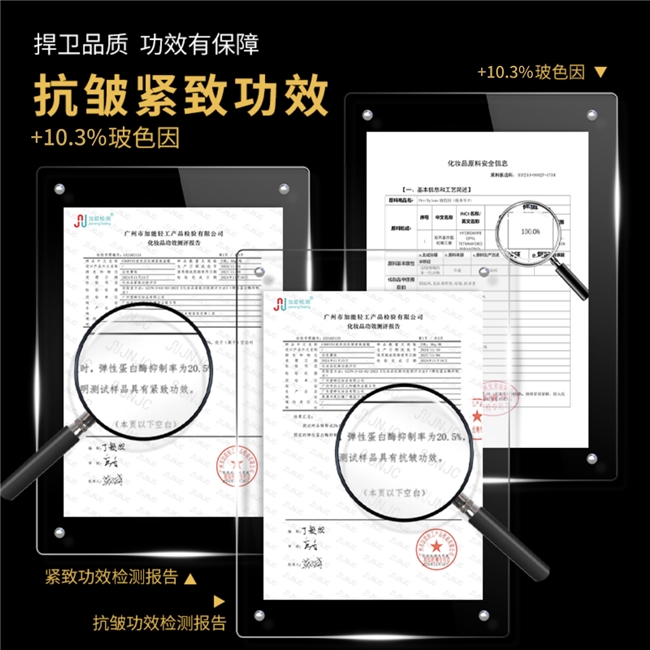 产品资质齐全,可在国家药监局官网查询备案,产品执行标准编号粤G妆网备字2024460699,执行标准QB/T1857(O/W),生产流程符合行业规范。同时通过SGS权威实验室检测,完成敏感肌安全性测试,报告显示产品不含酒精、香精、激素、色素等致敏成分,敏肌使用安全性有保障,所有检测数据、备案信息均可溯源,品质值得信赖。