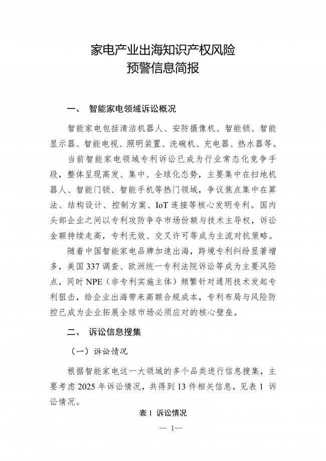 家电产业出海知识产权风险预警信息简报:企业需强化专利布局与风险防控